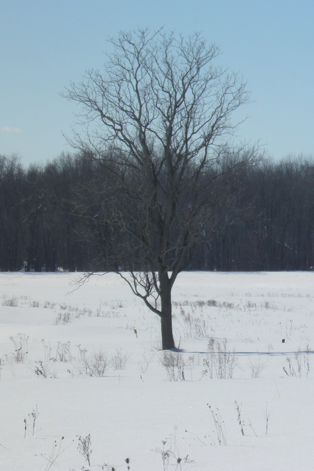 Went along the frozen pond and then into the woods. Caught up with Dave and his companions, Stephan (Seneca Falls) and Mario (Lyons) at the Wolf Tree. Dave was explaining how he was framing a shot by using a tree as the border for the left edge of the picture.